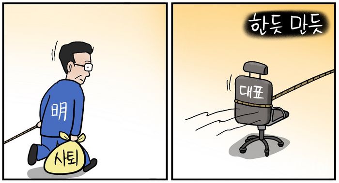 □ 데일리안 [D-시사만평] 이재명, 연임 위해 당대표 사퇴…물러나도 있는 '일인'체제 '또대명'