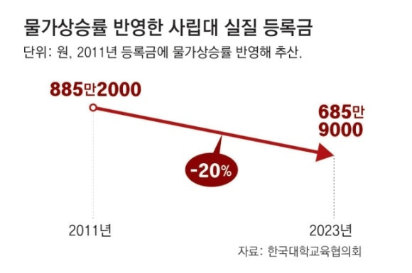 ▼등록금 16년째 동결, 한국 대학 등록금, 미 주립대학의 20% 수준. 성장 멈춘 한국 대학