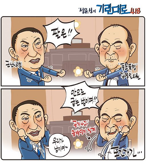 □ 전북일보 [전북만평 - 정윤성] 군산시의회 '도긴개긴'...'동료폭행' 김영일 의원 '공개 사과'로 끝?