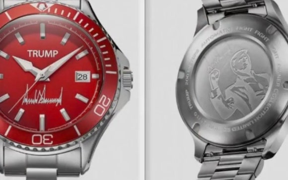 해도 너무한 트럼프의 대통령직을 이용한 장사... 제품 뒷판엔 피습 당치 외쳤던 ‘싸우자’(Fight)는 구호가 새겨졌다. 가격은 499~799달러(약 72~115만 원)로 책정. 이전에도 스니커즈, 향수 등 굿즈 장사로 수십억원 씩 수익 올려.(동아)▼
