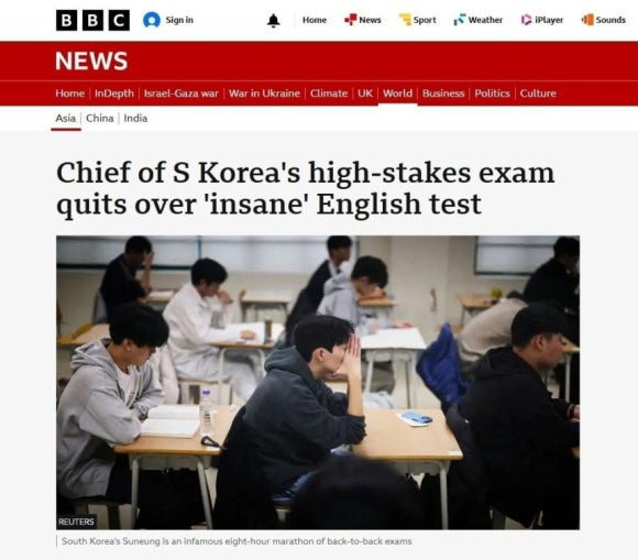 1. BBC도 놀란 한국 수능 영어 → 직접 풀어보라며 논란이 된 문제 홈페이지에 소개. 34번은 독일 철학...
