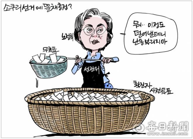 □ 데일리안 [D-시사만평] 한심해도 너무 한심…출근도 안한 선관위원장에 '소쿠리' 투표까지