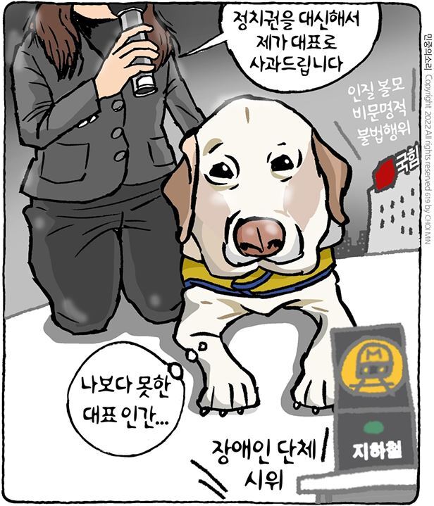 □ 프레시안 [만평] 이준석의 '장애인 볼모' 투쟁?