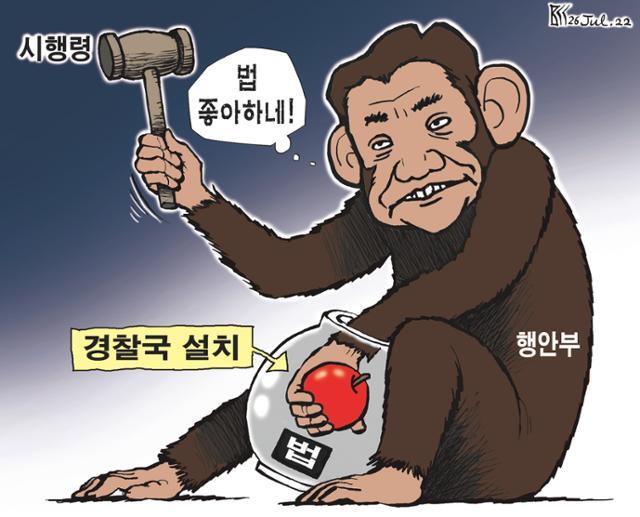 □ 굿모닝충청 [서라백 만평] '행안부 경찰국' 반발 확산, "경찰 장악"