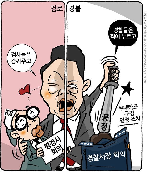 □ 민중의소리 [최민의 시사만평] 검사는 애국, 경찰은 쿠데타