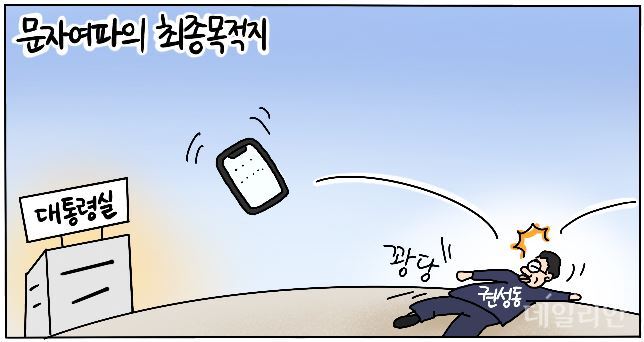 □ 데일리안 [D-시사만평] '황당' 문자 사건 여파의 최종 목적지는?…당대표를 넘어 대통령실까지