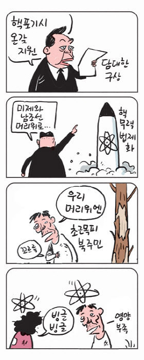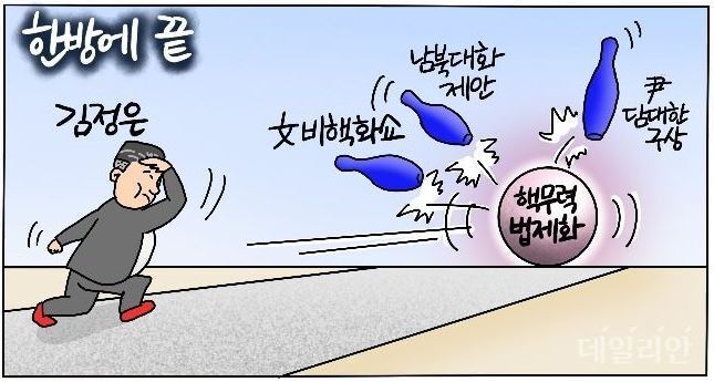 □ 데일리안 [D-시사만평] 문재인 정부의 북한 비핵화쇼 결국 '노쇼'…김정은, 핵공격 법제화