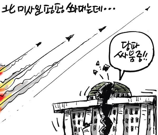 □ 중부일보 [최경락 만평] 北 미사일 펑펑 쏴대는데…