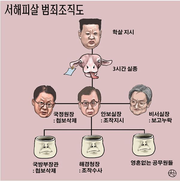□ 자유일보 [만평] 서해피살 범죄조직도