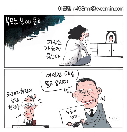 □ 경인일보 [경인만평 이공명] 부모는 산에 묻고…