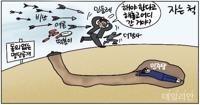 □ 데일리안 [D-시사만평] 민주당 여론 나빠지니 '쥐두더지'처람 숨어라…'강력주장' 이태원 희생자 명단 공개