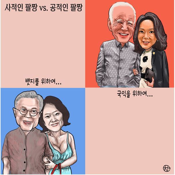 □ 자유일보 [만평] 사적인 팔짱 vs. 공적인 팔짱