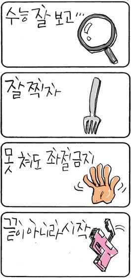□ 굿모닝충청 [서라백 만평] 수능이 뭐길래, 대학이 뭐길래