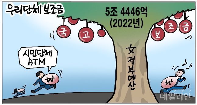 □ 데일리안 [D-시사만평] 문재인 정부' 시민단체 5조원대 보조금 '펑펑'…차라리 나라를 팔지 왜?