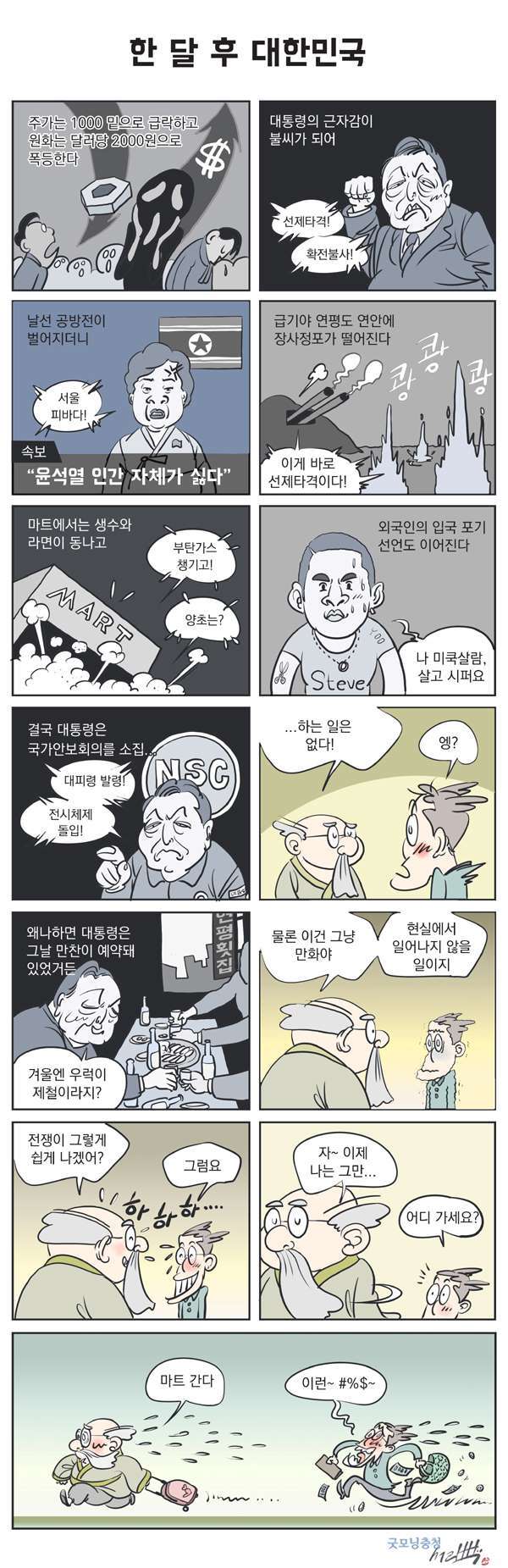 □ 굿모닝충청 [서라백 만평] 공포가 지배하는 '한 달 후 대한민국'