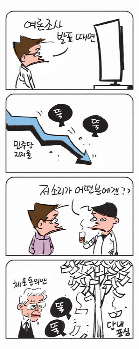□ 데일리안 [D-시사만평] 민주당 지지율 하락세 심상찮네…기반인 '호남'에서 '뚝뚝뚝' 떨어져
