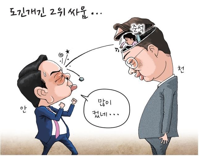 □ 경기일보 [경기만평] 도긴개긴 2위 싸움…