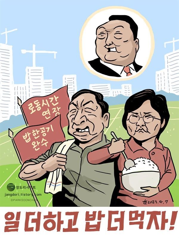 □ 오마이뉴스 [박순찬의 장도리 카툰] 일 더 하고 밥 더 먹자!