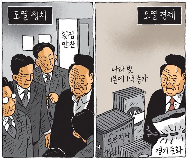 □ 국제신문 [서상균 그림창] 도열 정치…도열 경제
