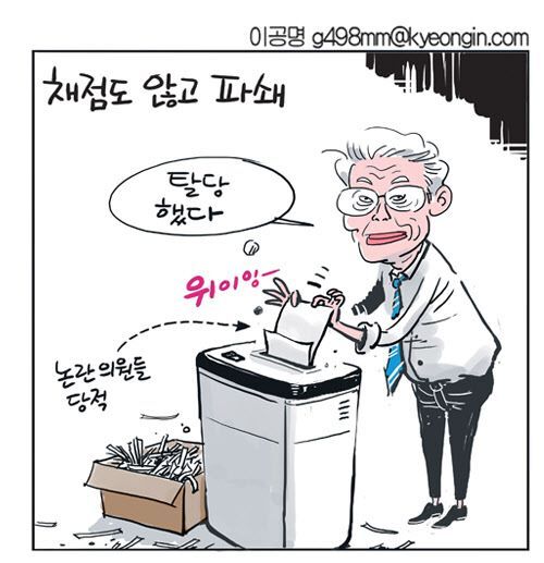 □ 경인일보 [경인만평 이공명] 채점도 않고 파쇄