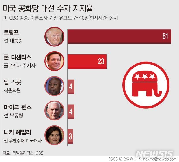 □ 트럼프, 기소에도 공화당 주자 중 여전히 압도적 지지율