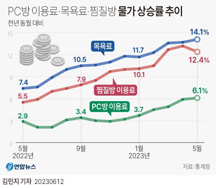 □ PC방 이용료·목욕료·찜질방 물가 상승률 추이