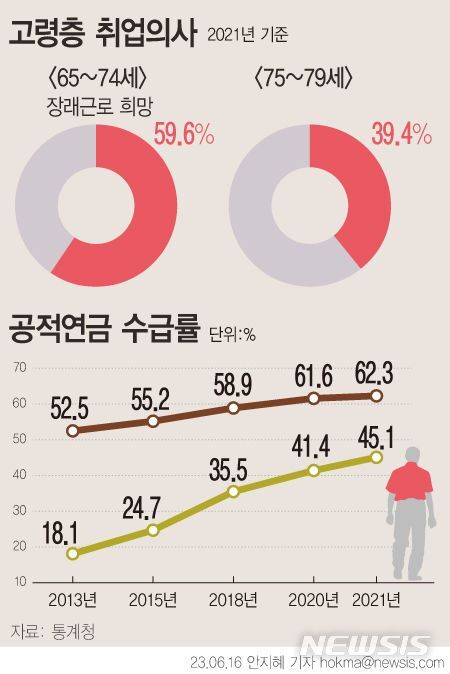 □ 65~74세 노인 중 59.6% "계속 일하고 싶다"