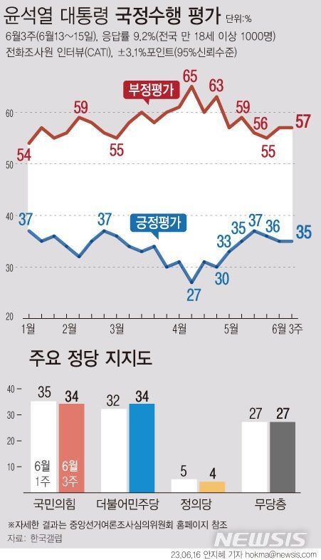 □ 윤석열 대통령 지지율 35%...두 달째 30% 중반(갤럽)