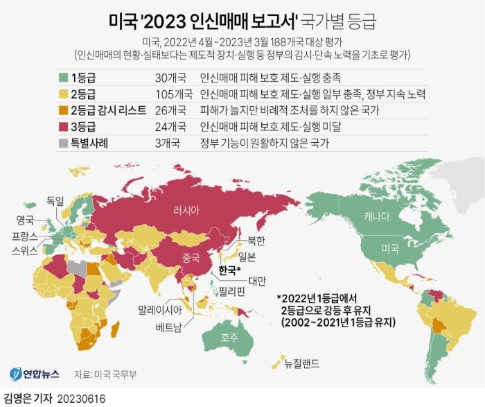 □ 미국 '2023 인신매매 보고서' 국가별 등급