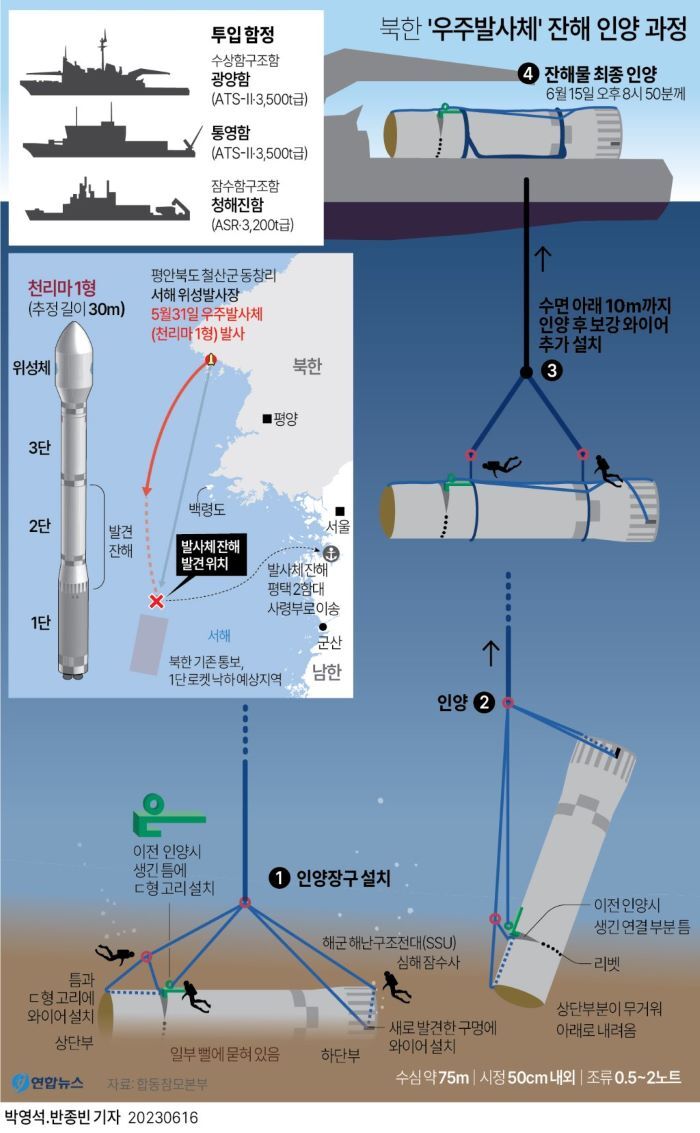 □ 북한 '우주발사체' 잔해 인양…인양 방법은