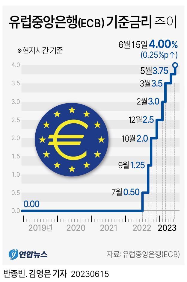 □ 유로존 ECB, 기준금리 0.25%p ↑ …韓보다 0.5%p 높다