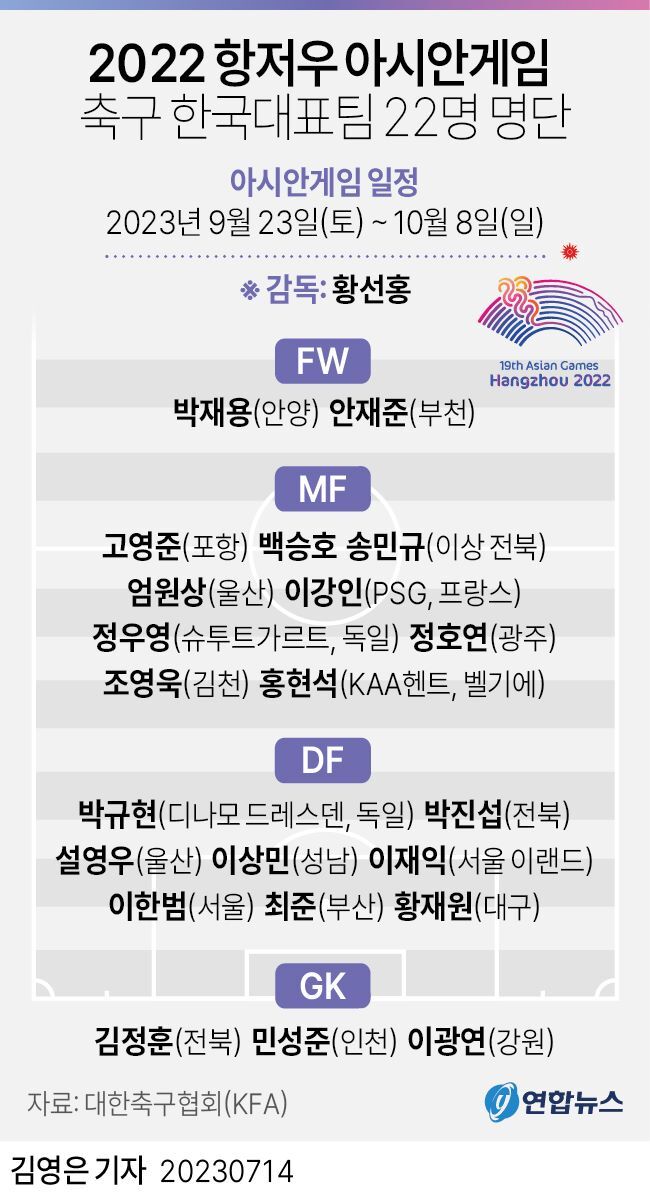 □ 2022 항저우 아시안게임 축구대표팀 명단