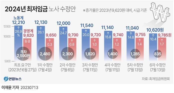 □ 최저임금 6차 수정안 "1만620원 vs 9785원"