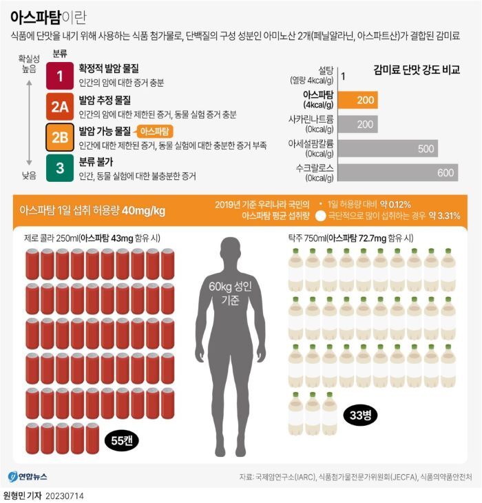 □ 아스파탐, '전자파급' 발암물질 분류..."기준 지키면 안전"