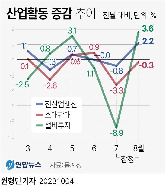 □ 반도체 반등에 산업생산 2.2% 증가