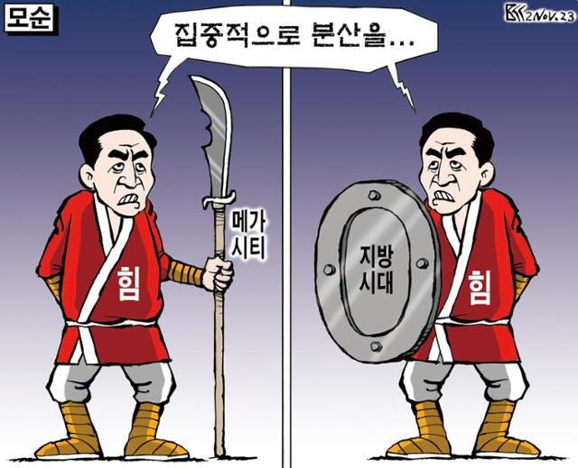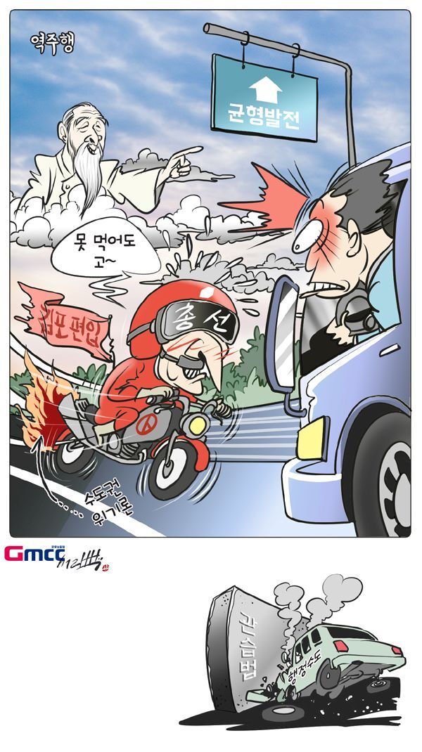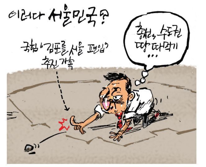 □ 굿모닝충청 [서라백 만평] '김포 편입'까지 꺼내든 국힘, 뒤로 밀린 '균형발전론'