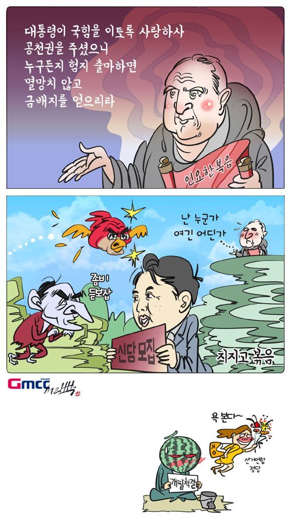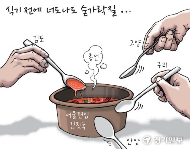 □ 경기일보 [경기만평] 식기 전에 너도나도 숟가락 질