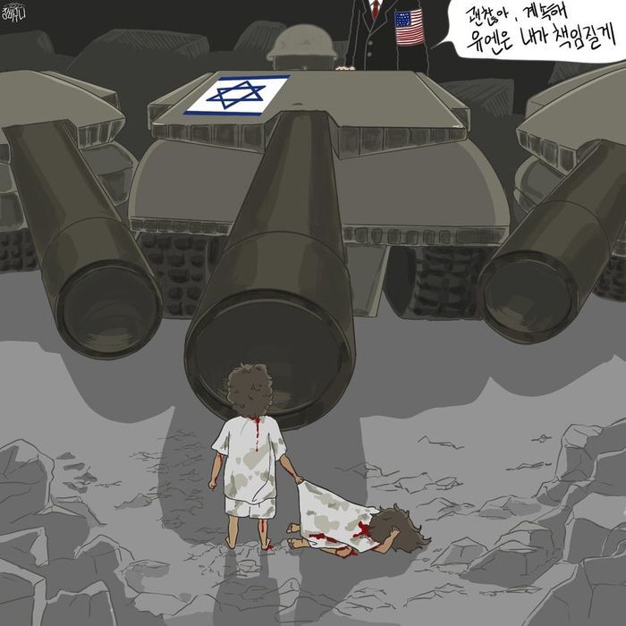 □ 자주시보 [만평] 학살을 일으키는 자들