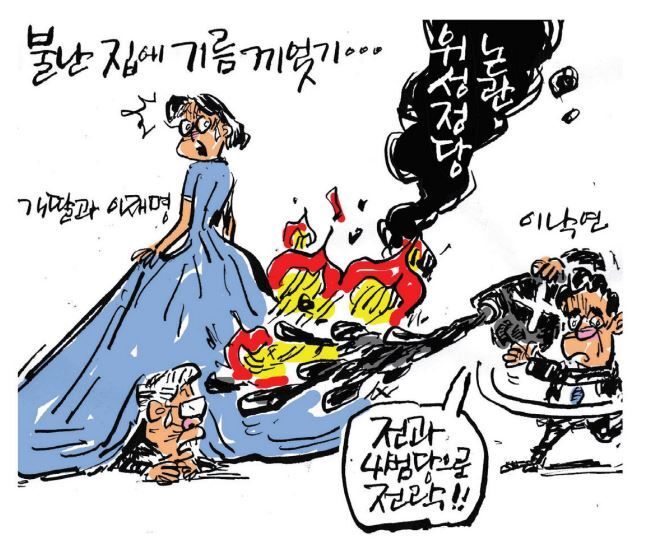 □ 중부일보 [최경락 만평] 불난 집에 기름 끼얹기...