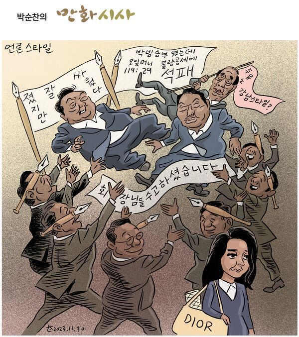 □ 민들레 [박순찬의 만화시사] 언론 스타일