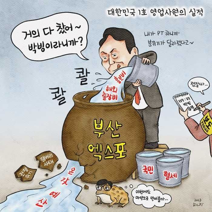 □ 자주시보 [만평] 대한민국 1호 영업사원의 실적