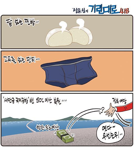 □ 전북일보 [전북만평 - 정윤성] 새만금 SOC 예산 거래? 공항 빠진 예산 복원...