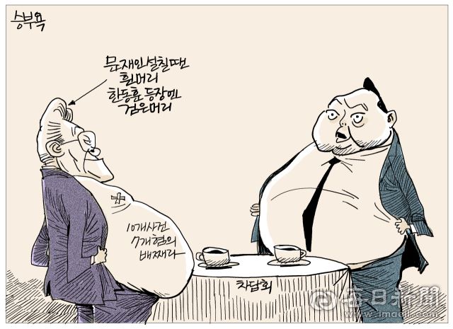 □ 전북일보 [전북만평 - 정윤성] '영수회담' 슈퍼 이끌림...