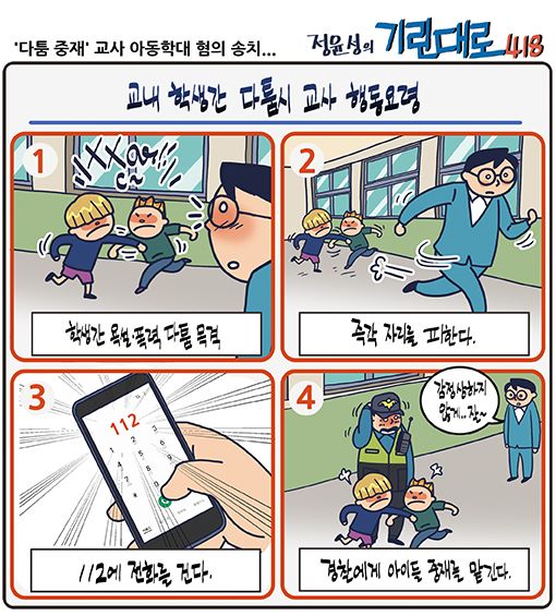 □ 전북일보 [전북만평 - 정윤성] 학교내 학생간 다툼시 교사 행동요령...