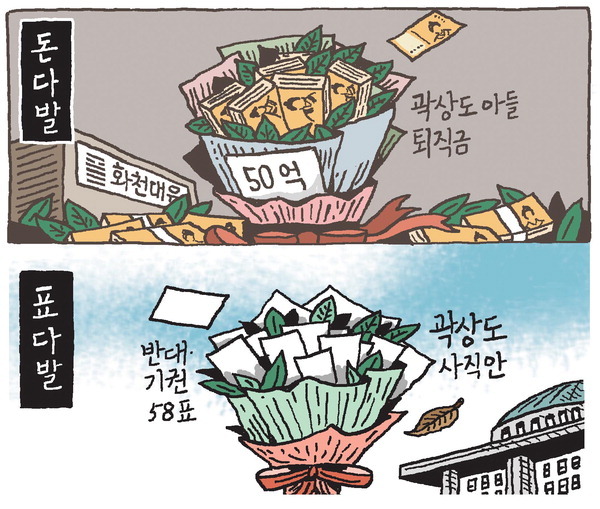 □ 국제신문 [서상균 그림창] 돈다발...표다발