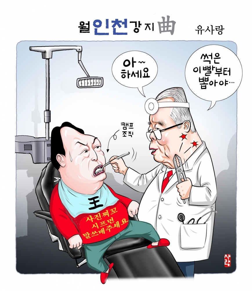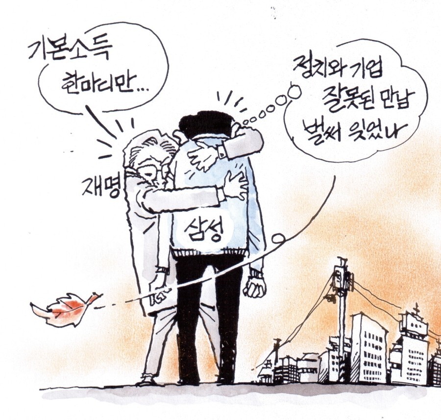 □ 경인일보 [경인만평 이공명] 뻗치기도 지친다