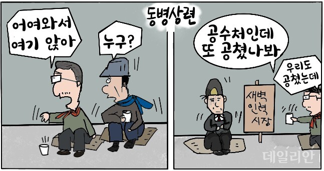 □ 데일리안 [D-시사만평] '동병상련'…공수처 '공치리' vs 인력시장 '공치리'