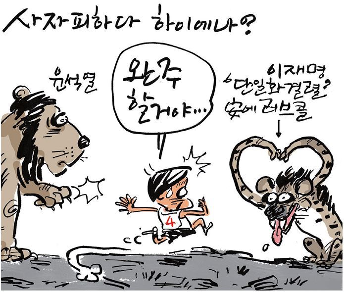 □ 중부일보 [최경락 만평] 사자 피하다 하이에나?