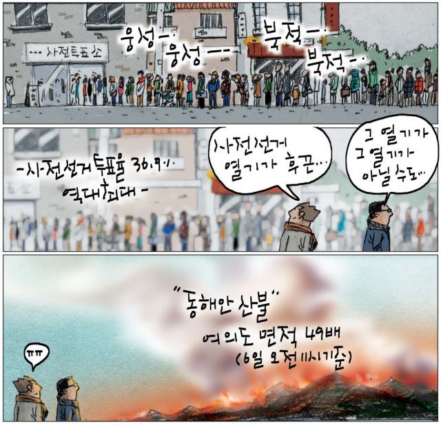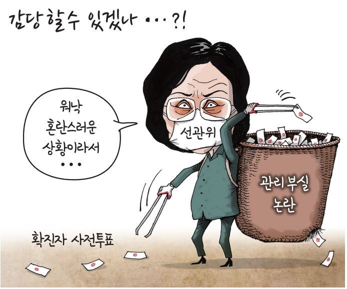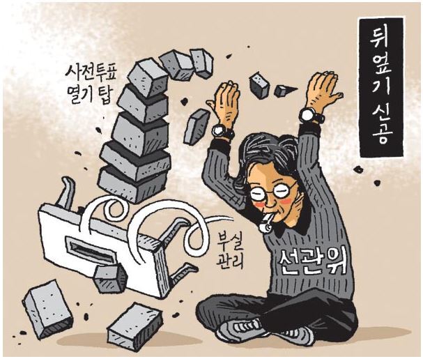 □ 중부일보 [최경락 만평] 역대급 사전투표율(×)→역대급 부실관리