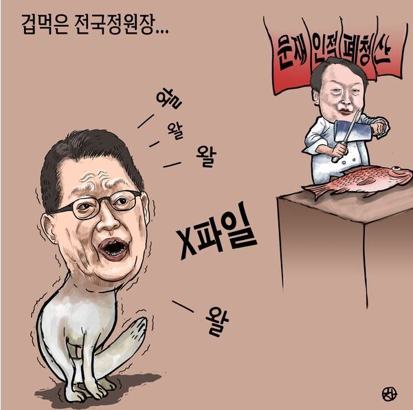 □ 자유일보 [만평] 겁먹은 전국정원장...